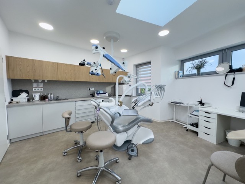 Plně vybavená ordinace: mikroskop, lupové brýle, intraorální skener, OPG, endomotor